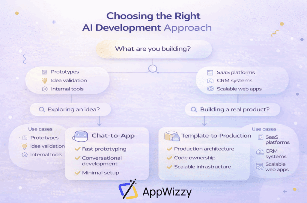 As AI development platforms mature, the choice between Chat-to-App and Template-to-Production increasingly depends on what stage of product development we are in.