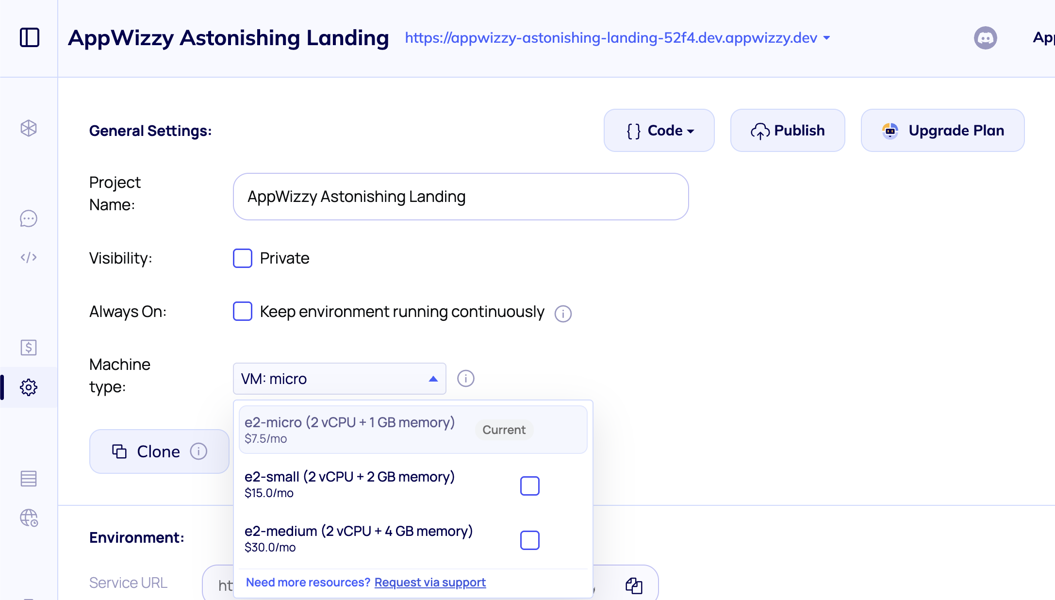 You can now choose the VM configuration for deployment. Upgrade or downgrade your VM in Settings — changes apply automatically.